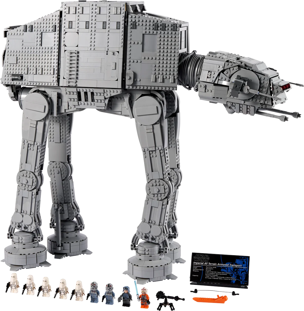 El AT-AT puede alojar hasta 40 minifiguras LEGO. El set incluye 9 minifiguras: General Veers, Luke Skywalker, un soldado comandante de las nieves, 4 soldados de las nieves y 2 pilotos de AT-AT. Además, vienen 2 motos speeder y un bláster pesado E-Web.