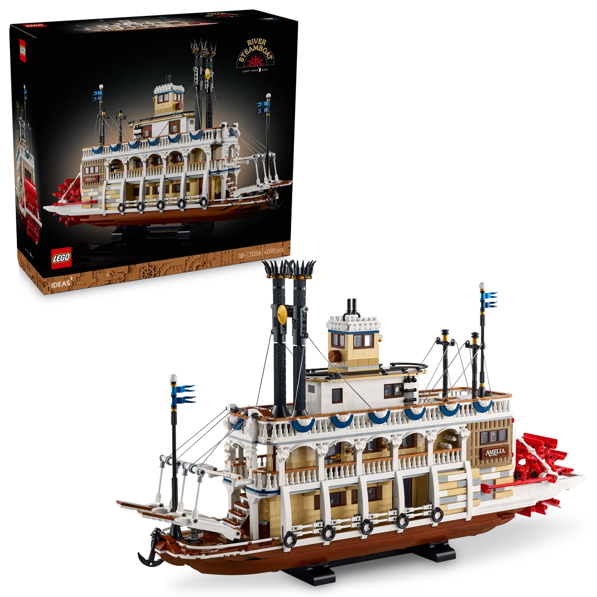 Navega a través del tiempo y la ingeniería clásica con el LEGO® Ideas Barco de Vapor Fluvial (21356), una impresionante maqueta de exposición de 4090 piezas diseñada para adultos apasionados por la historia, la mecánica y la elegancia de la navegación tradicional.
