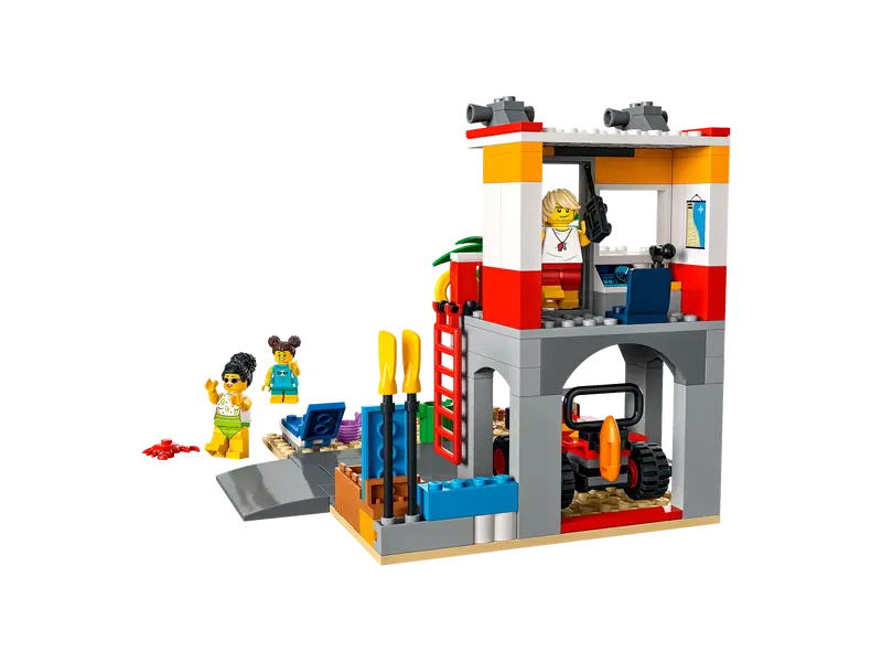 ¡El verano nunca termina con el set LEGO® City Base de Socorristas en la Playa! Diseñado para niños y niñas a partir de 5 años, este colorido y completo set ofrece diversión playera sin límites con una base de rescate de dos niveles, un carrito de helados, un todoterreno y una escena de playa con palmera, tortuga y cangrejo incluidos.