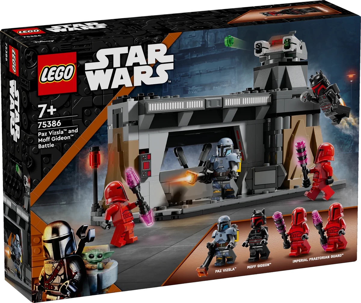 Acción intensa, personajes emblemáticos y detalles realistas: el set LEGO® Star Wars™ Batalla entre Paz Vizsla y Moff Gideon (75386) te permite recrear uno de los momentos más memorables de la temporada 3 de The Mandalorian. Diseñado para niños y niñas a partir de 7 años y también para jóvenes fans y coleccionistas, este set te sumerge en el corazón de la batalla por Mandalore.