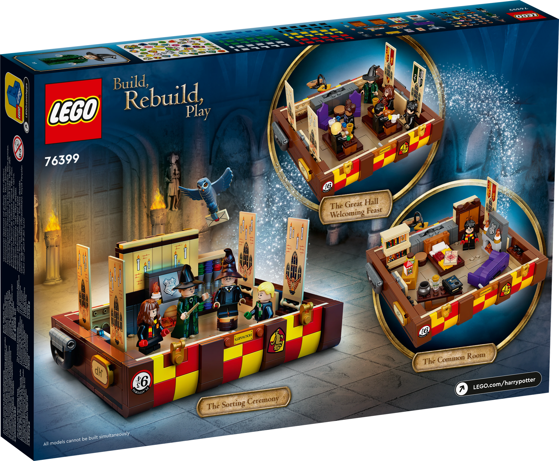Igual que los alumnos de Hogwarts, los peques podrán decorar su baúl con los colores de su casa favorita y divertidas pegatinas incluidas. El set contiene un completo surtido de piezas de minifigura (cabellos, tonos de piel, accesorios y más) para crear hasta 5 personajes únicos de las películas o inventar sus propios alumnos de magia.