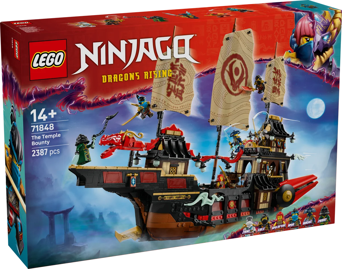 Explora las leyendas de NINJAGO: El Renacer de los Dragones con el impresionante LEGO® NINJAGO® Bounty del Templo (71848), un set de 2387 piezas diseñado para fans a partir de 14 años. Esta majestuosa maqueta de barco fusiona construcción creativa, funciones ocultas y exposición de alto nivel en una experiencia única.