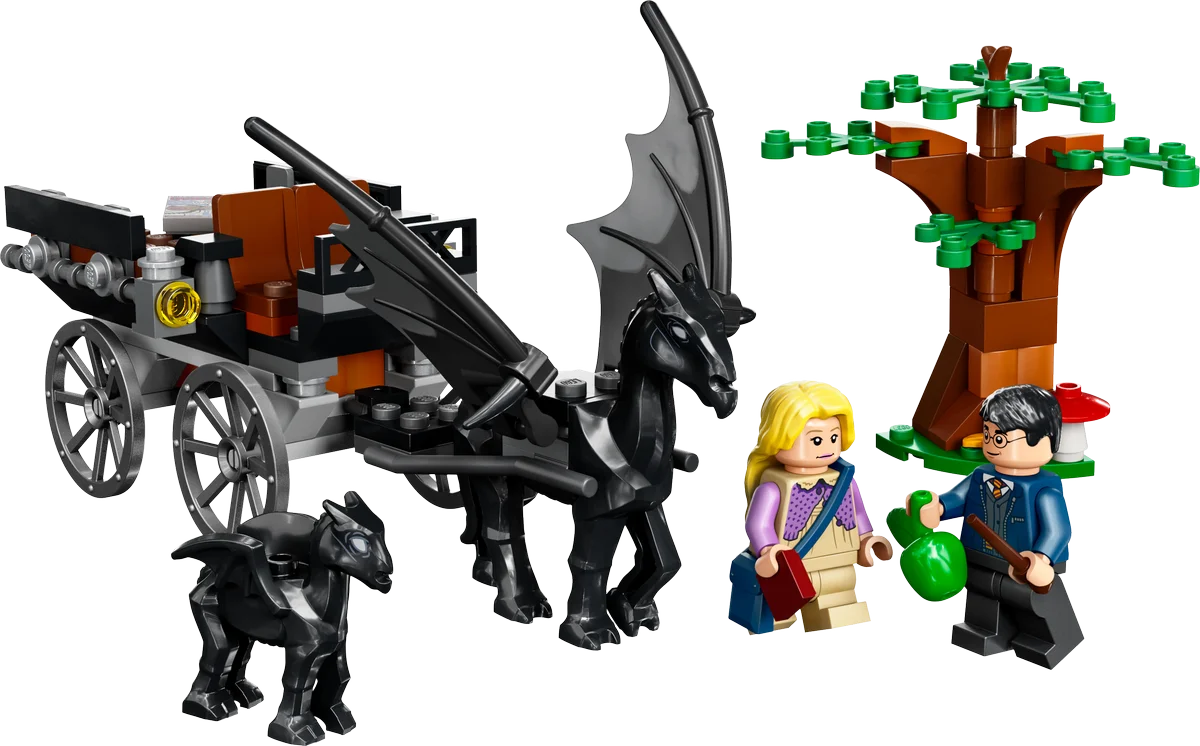 Incluye 2 minifiguras: Harry Potter™ y Luna Lovegood™, junto a un Thestral adulto y su cría. El carruaje construible puede engancharse al Thestral para dar vida a las escenas más memorables de *Harry Potter y la Orden del Fénix™* o para inventar nuevas aventuras llenas de magia.