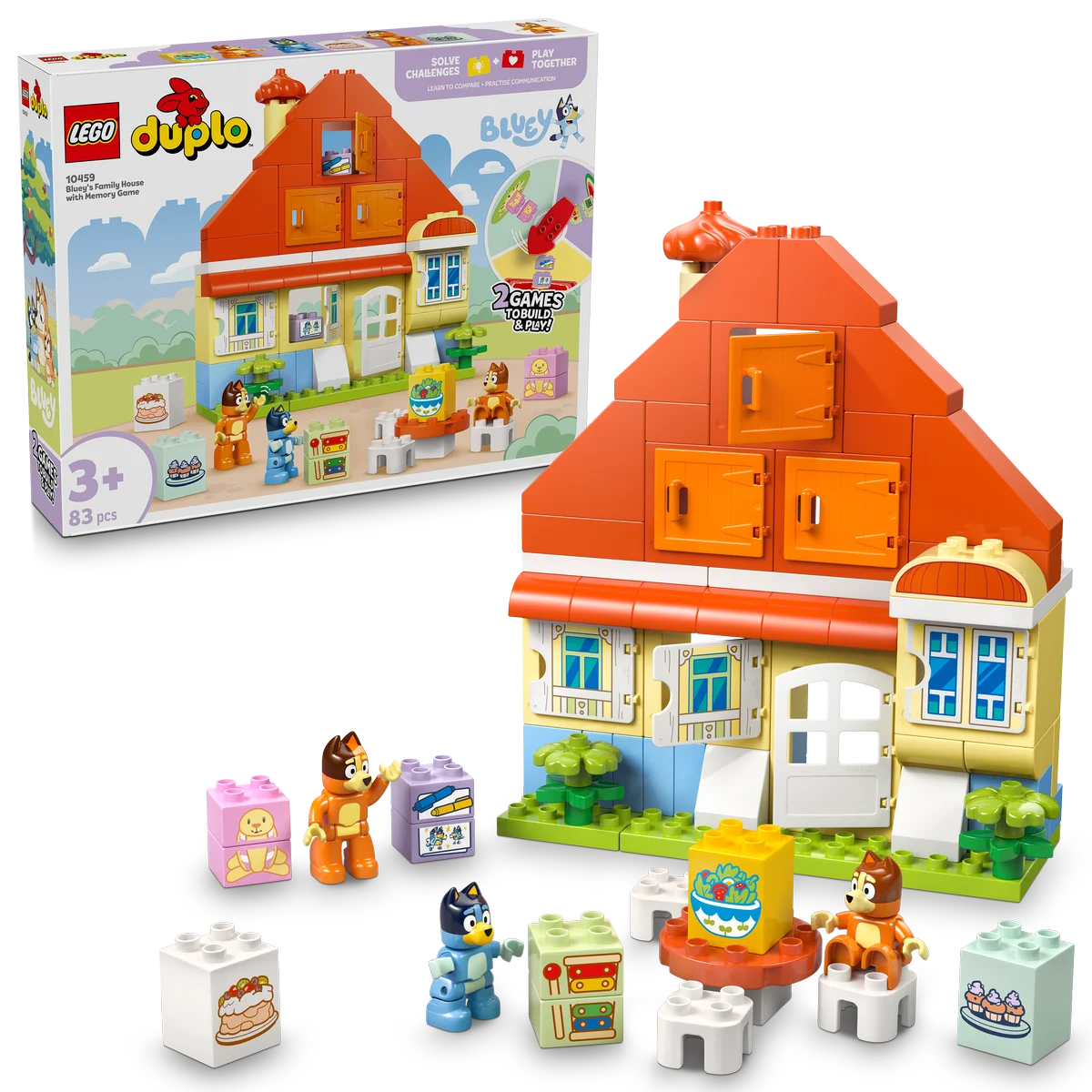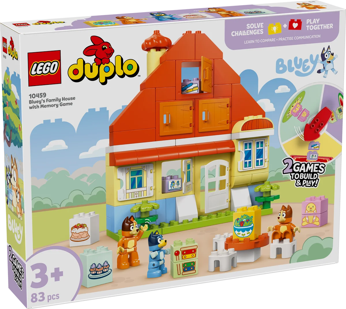 El set LEGO® DUPLO® Bluey: Casa Familiar con Juego de Memoria (#10459) es mucho más que una casa de juguete: es una herramienta interactiva que invita a los niños y niñas a partir de 3 años a explorar, aprender y jugar en familia, recreando escenas de la querida serie para televisión Bluey.