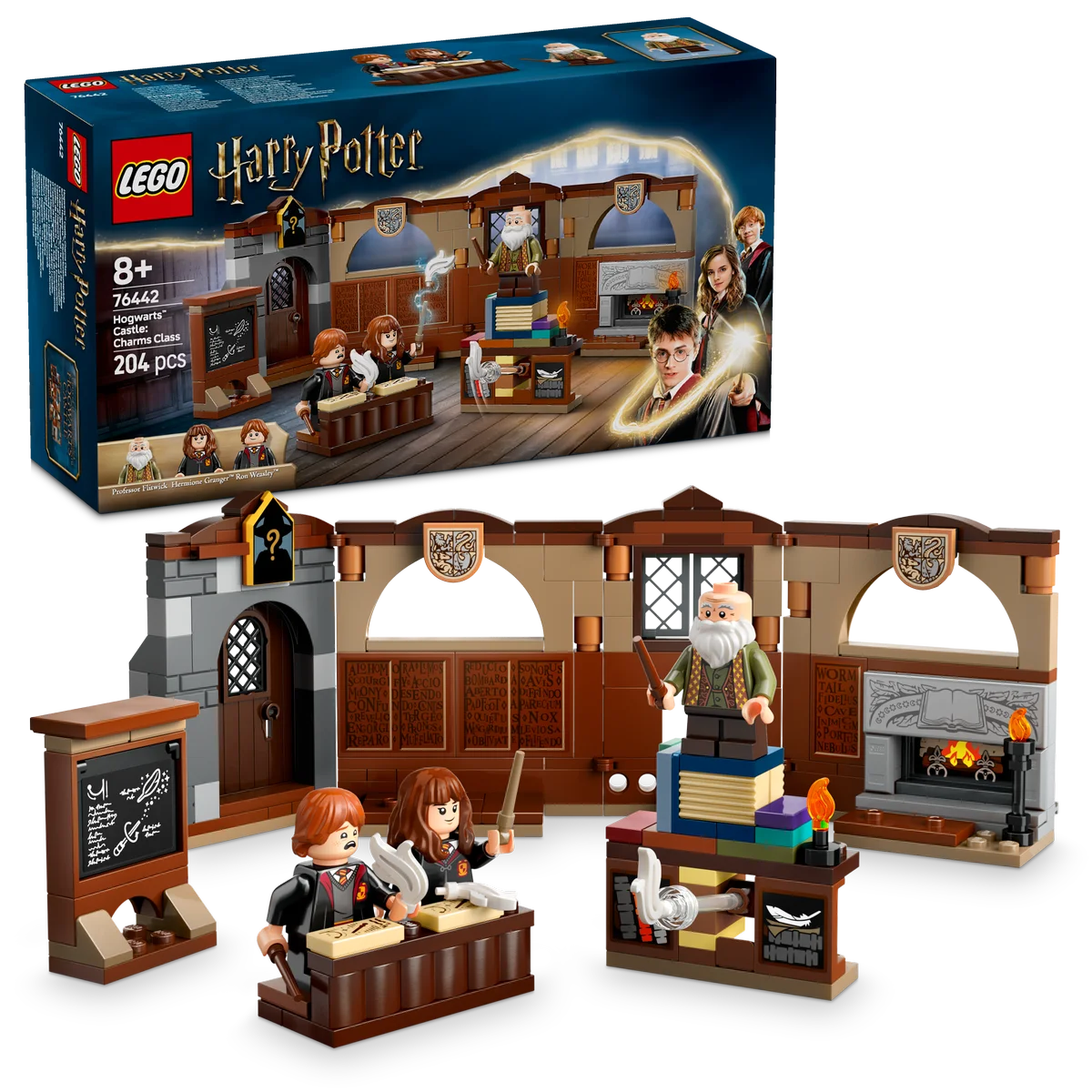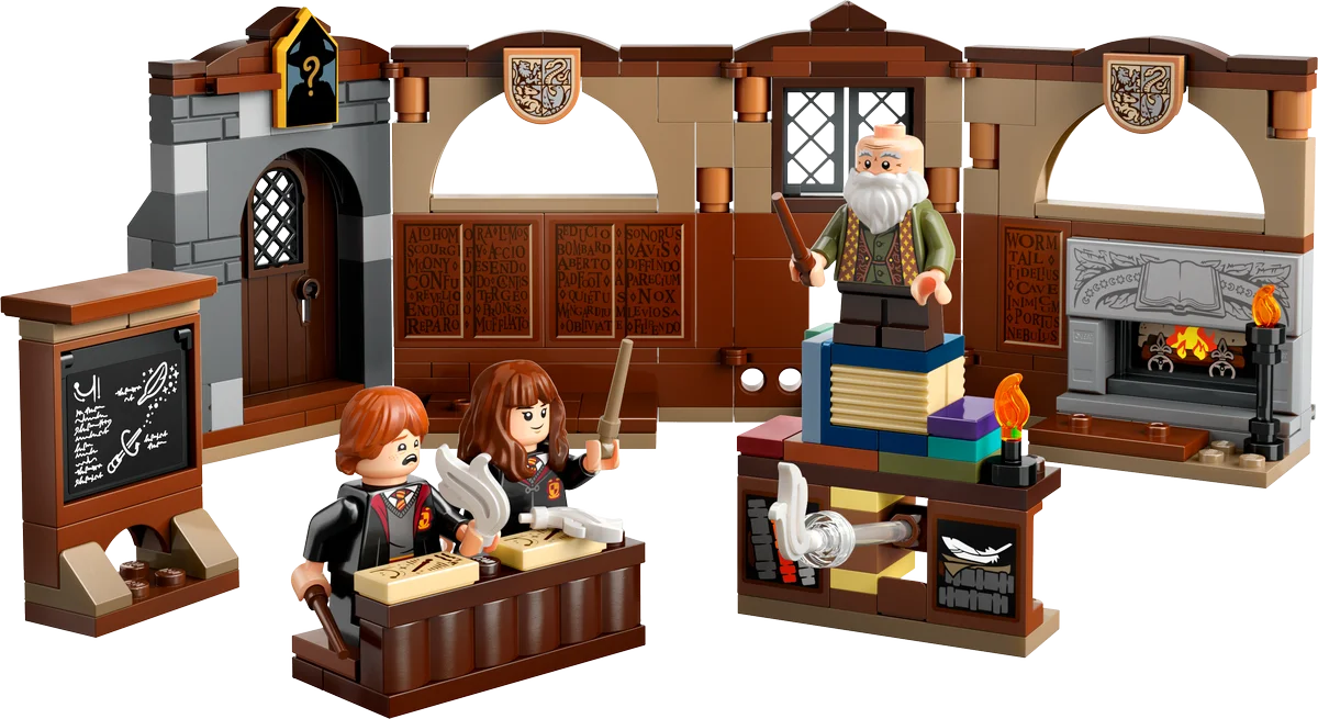Este set mágico incluye minifiguras de Ron Weasley™, Hermione Granger™ y el Profesor Flitwick, además de un aula construible repleta de detalles fieles a la película.