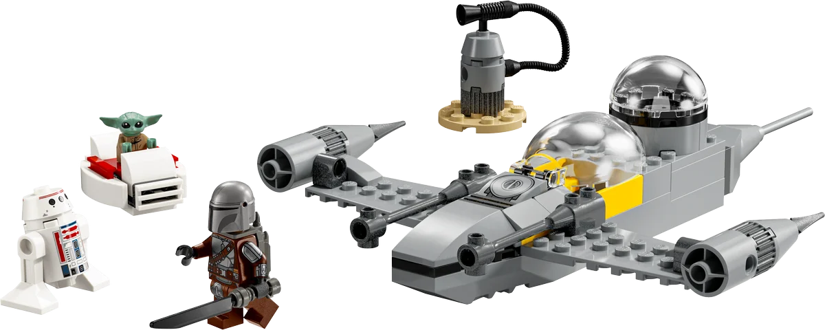 Este modelo de 92 piezas incluye un caza estelar N-1 con cabina abatible para el Mandaloriano y espacio para Grogu, además de una estación de repostaje construible para ampliar la experiencia de juego.