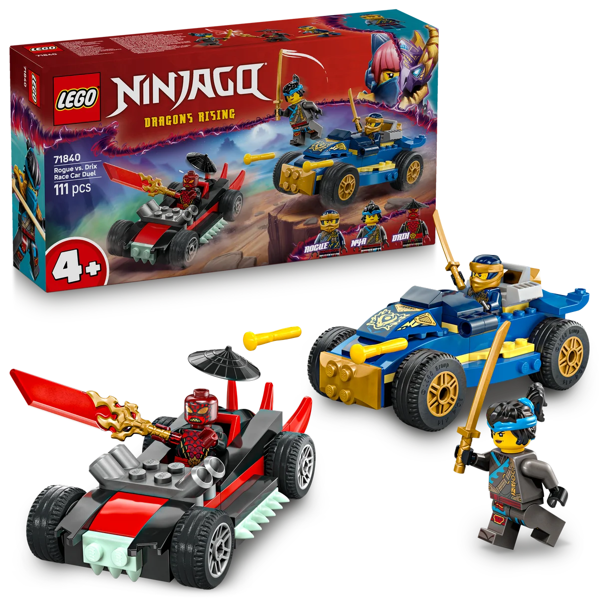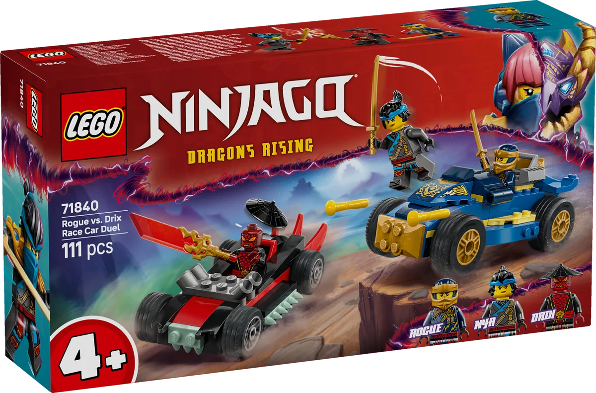 LEGO® NINJAGO® Desafío a Máxima Velocidad: Rogue vs. Drix (71840) – Carrera ninja para pequeños constructores