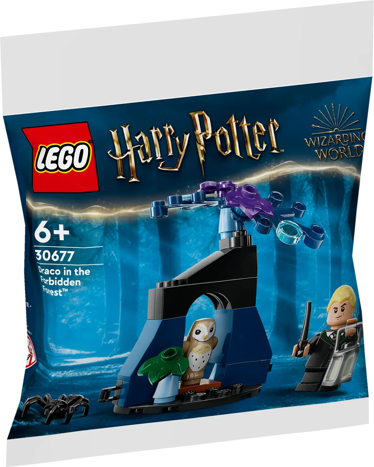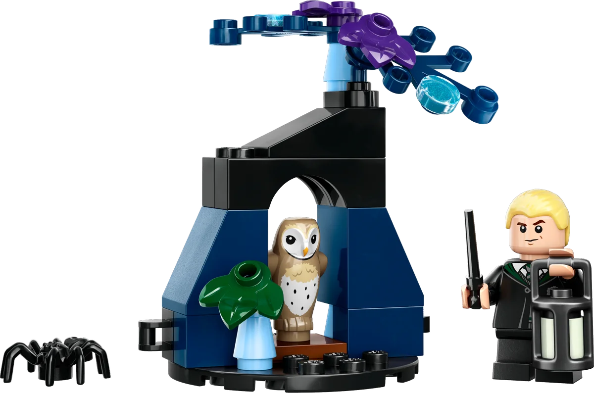 Incluye una minifigura de Draco Malfoy™ con un farol que brilla en la oscuridad para iluminar los oscuros rincones del bosque encantado. Además, el set contiene una figura de lechuza y una figura de araña, perfectas para añadir un toque de misterio al juego.