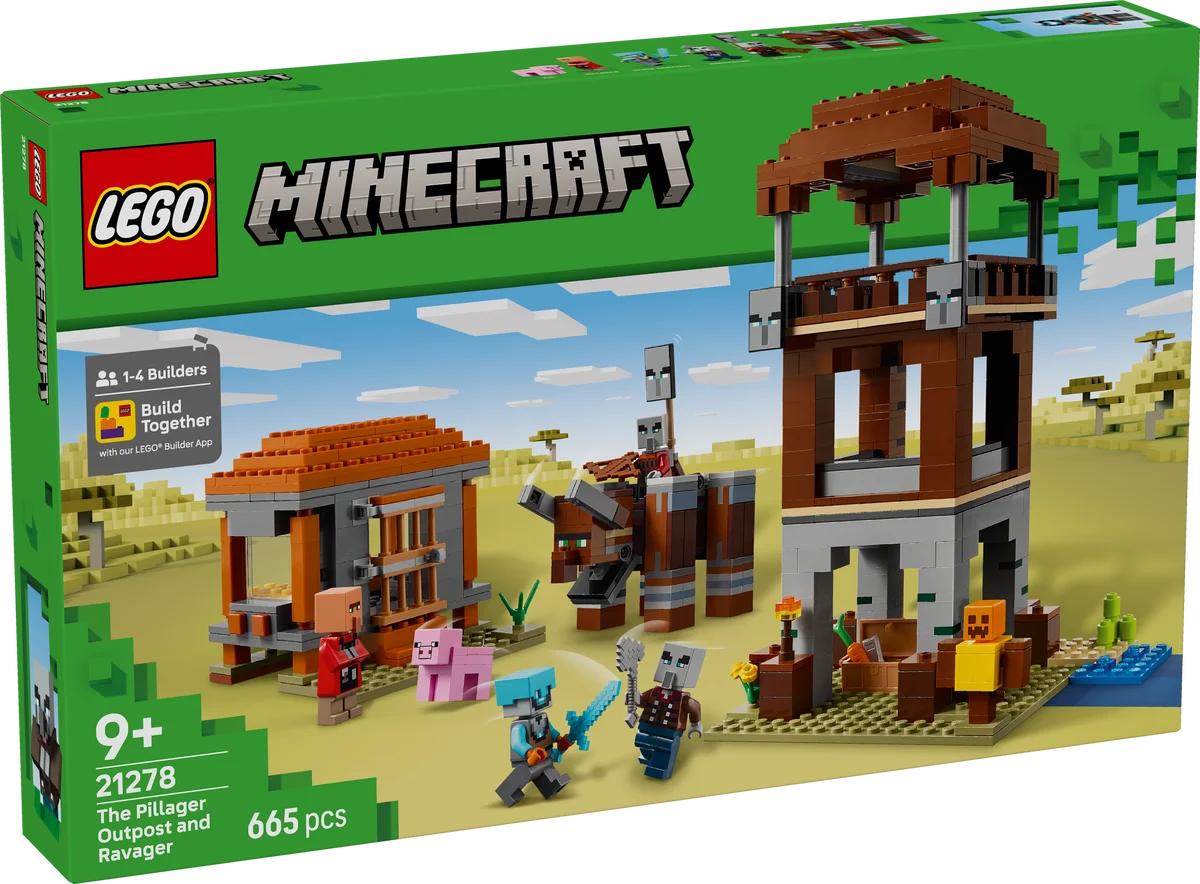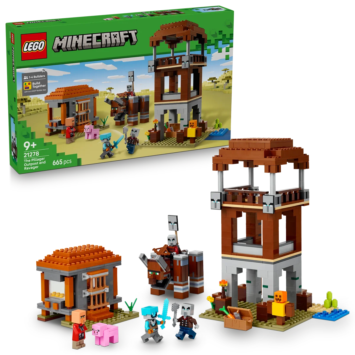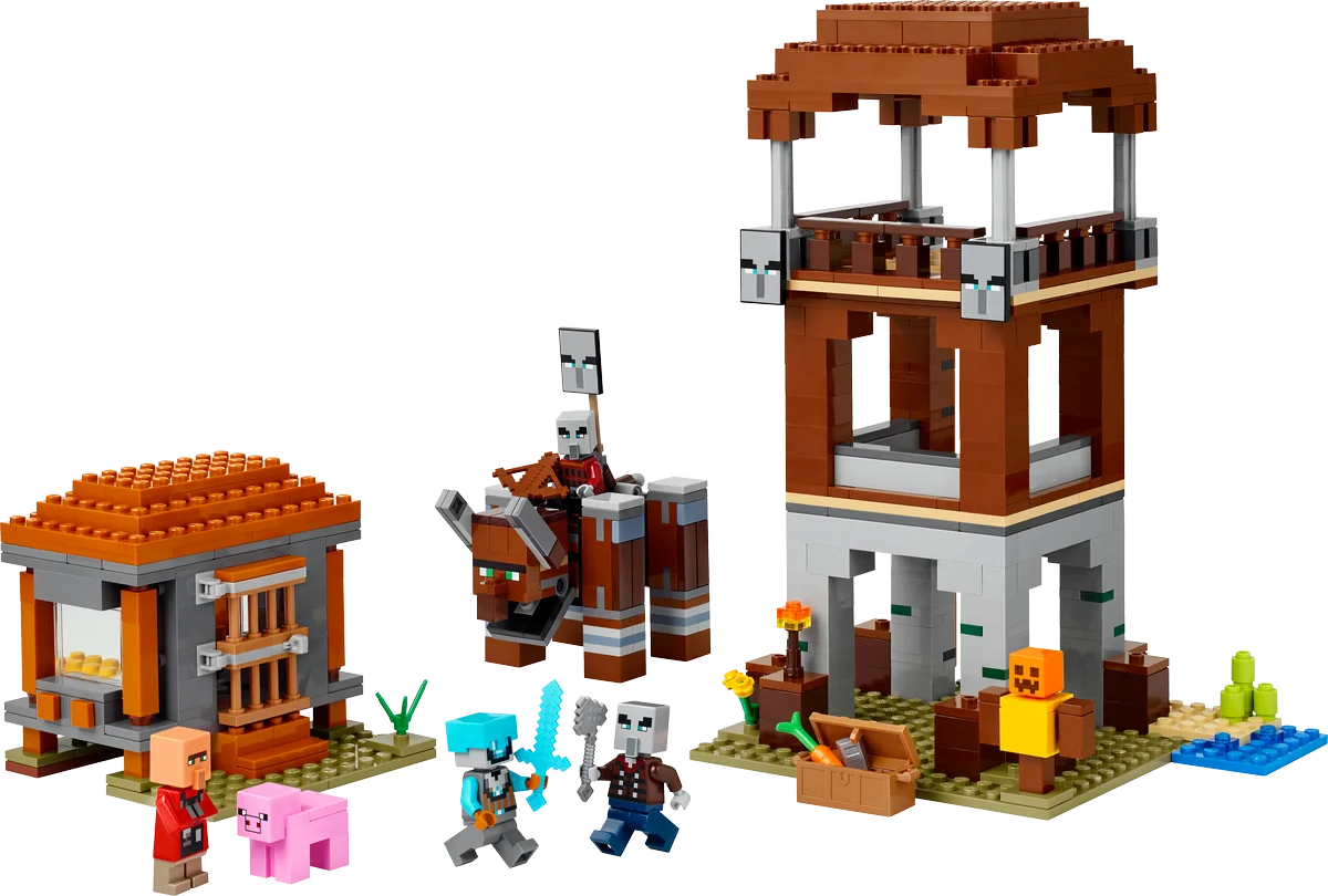 LEGO® Minecraft® El Puesto de Avanzada de los Saqueadores y el Devastador (21278) – Acción en la aldea con función de ataque