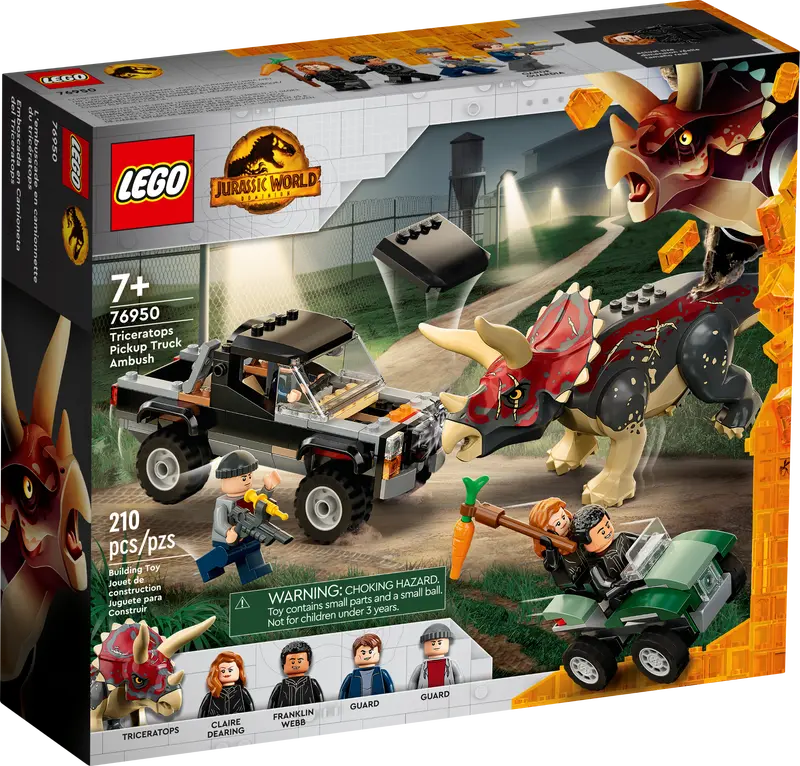 Vive la emoción de la película Jurassic World Dominion con el set LEGO® Jurassic World Emboscada en Furgoneta del Triceratops (76950). Ideal para fans de los dinosaurios y los vehículos, este juguete de acción invita a niños y niñas de 7 años o más a sumergirse en misiones de rescate y persecuciones trepidantes.