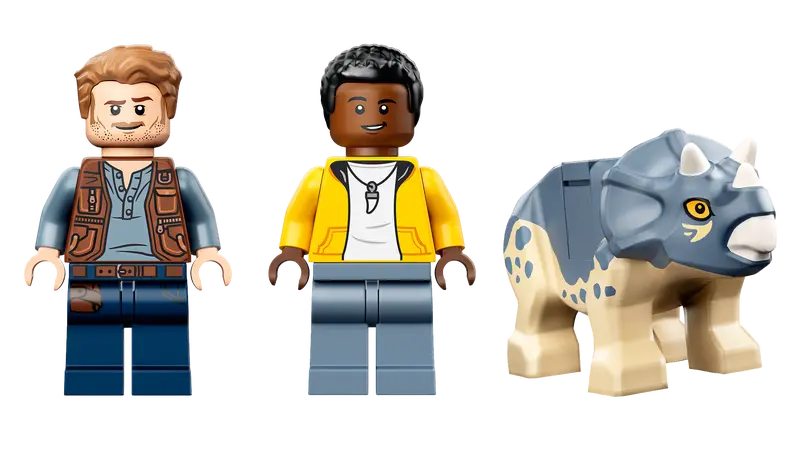 - 2 minifiguras y 1 cría de Triceratops: Recrea escenas educativas o aventuras originales en el universo Jurassic.