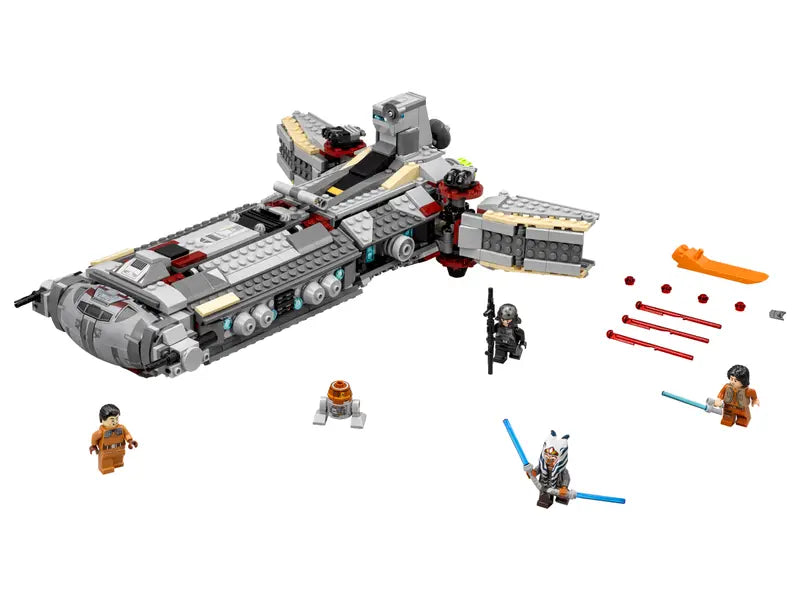 El set LEGO® Star Wars™ Fragata de Combate Rebelde (#75158) te transporta al universo de la serie animada Star Wars: Rebels, donde podrás ayudar a Ezra Bridger, Ahsoka Tano, Chopper y el comandante Sato a enfrentarse al implacable agente Kallus.
