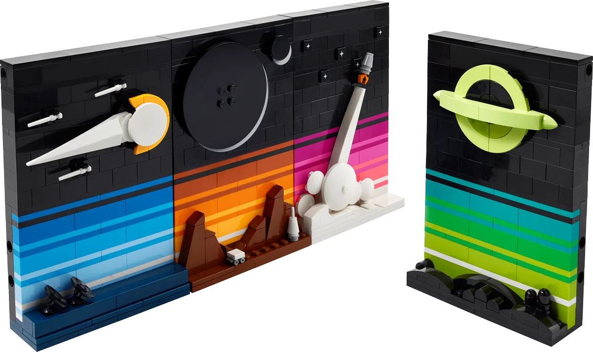 Apaga los propulsores y deja volar tu imaginación con el LEGO® Ideas Historias de la Era Espacial (21340), un elegante set para adultos que rinde homenaje al arte y la ciencia ficción de los años 80 con cuatro postales 3D construibles y conectables.