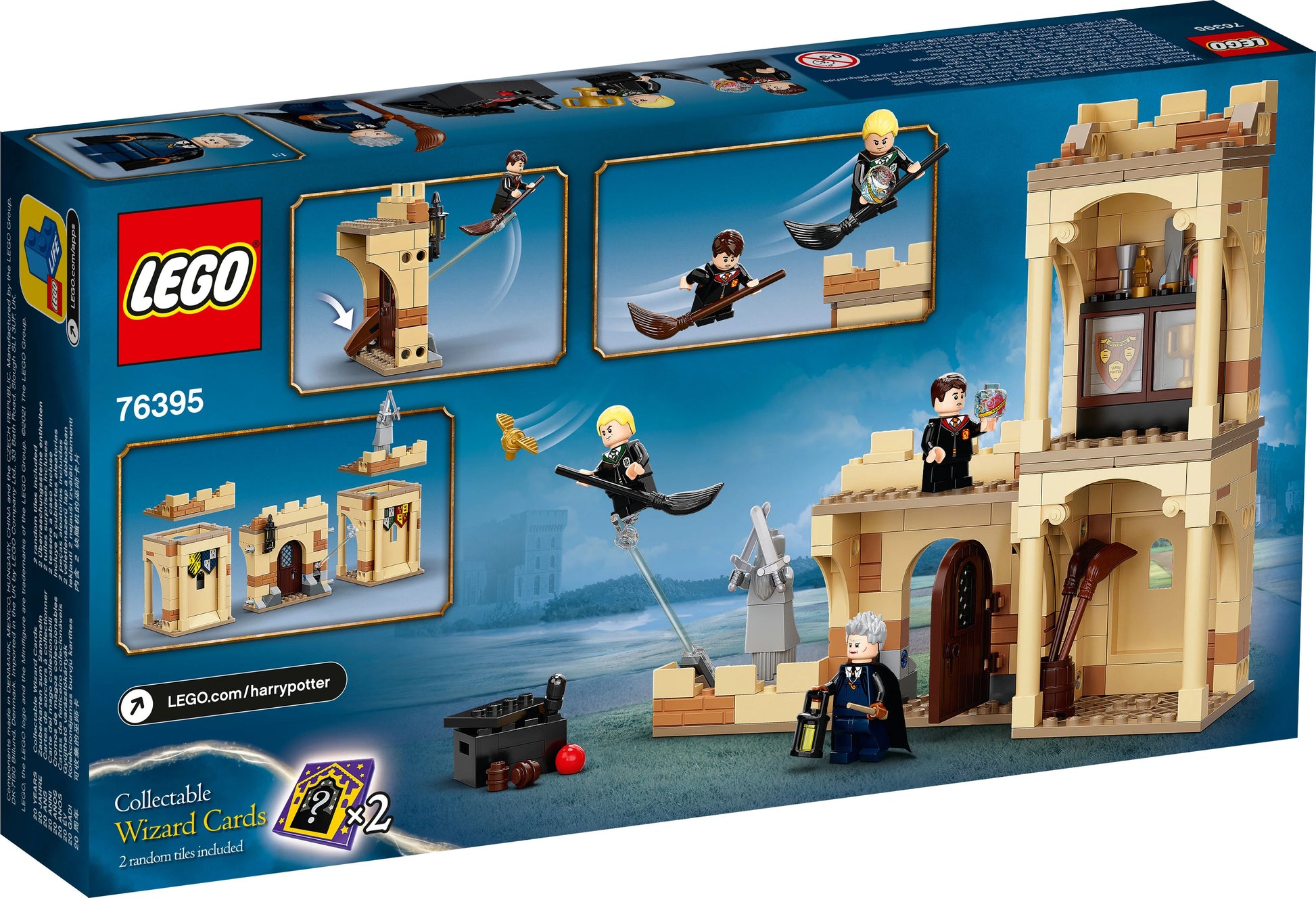 La construcción se divide en 5 módulos reconfigurables, como una sala de trofeos de Quidditch y un almacén con equipamiento deportivo. Este versátil set también incluye una minifigura dorada del Profesor Quirrell (edición aniversario) y 2 cromos de magos aleatorios para coleccionar.