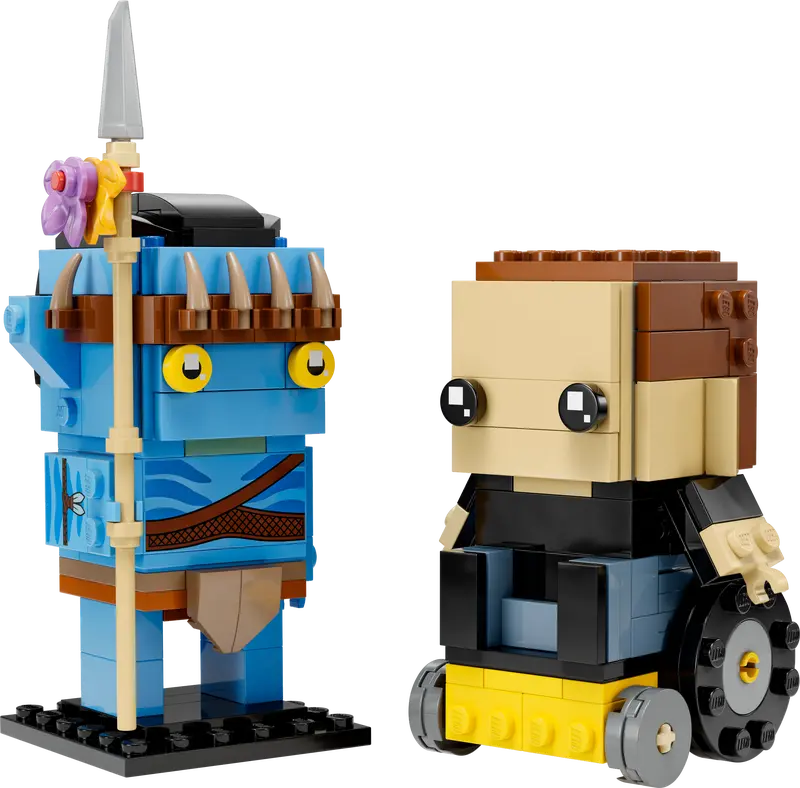 - Incluye dos figuras BrickHeadz: Jake Sully en forma humana con silla de ruedas y su Avatar con lanza.