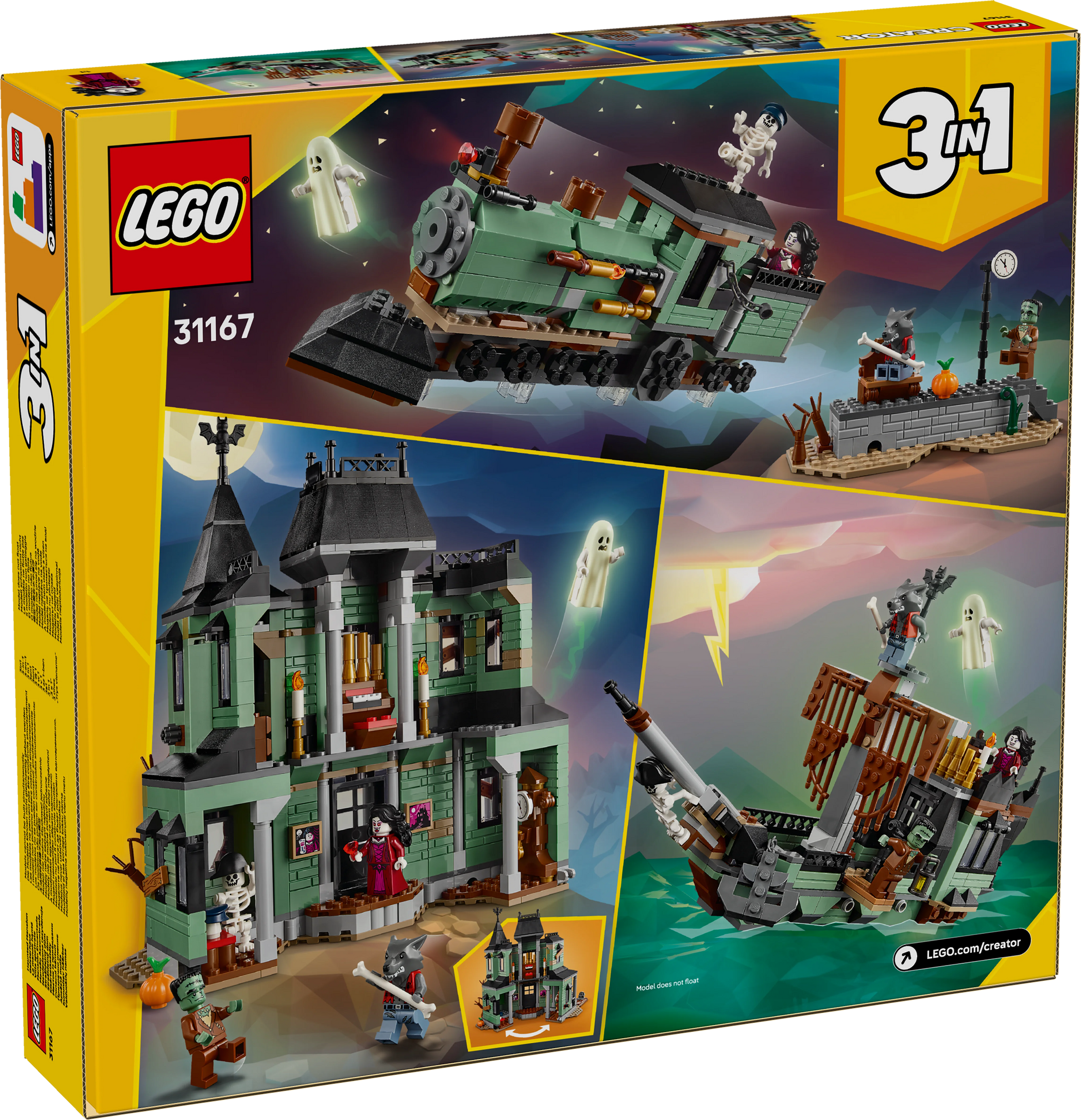 Convierte cualquier día en una aventura escalofriantemente divertida con el set LEGO® Creator Mansión Encantada 31167. ¡Elige tu historia y deja que comience el miedo!