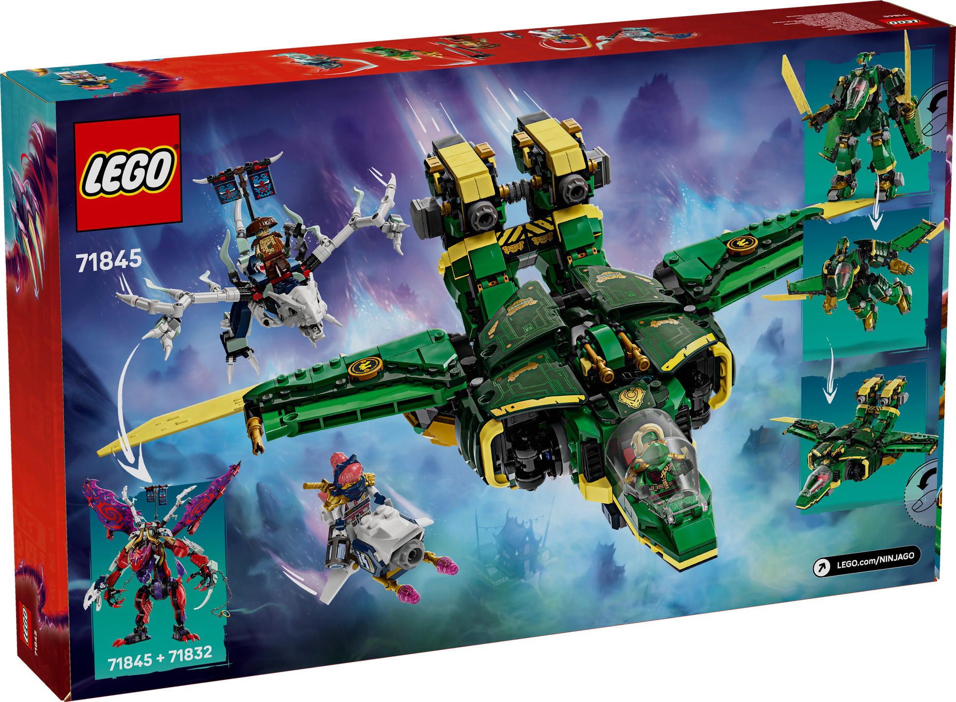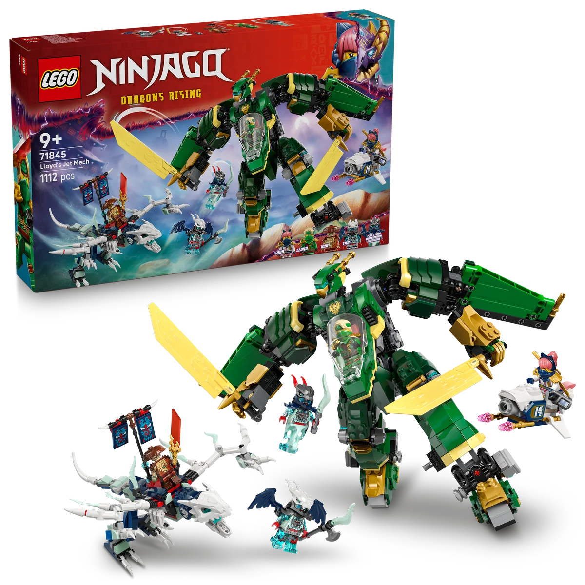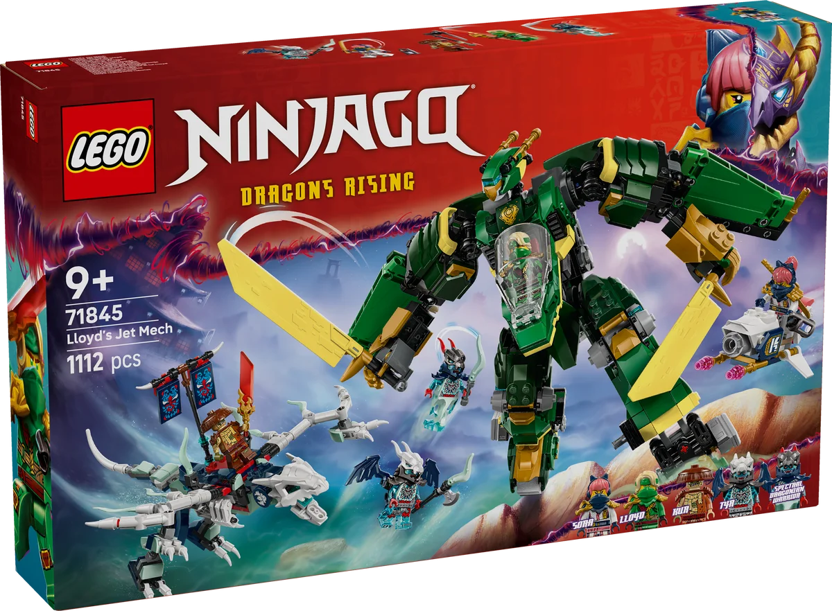 El poderoso meca de Lloyd tiene patas y brazos articulados, cabina y dos enormes espadas. Pero la verdadera magia ocurre cuando se transforma en un reactor ninja con cabina, alas y motores a reacción, listo para combatir en el aire.
