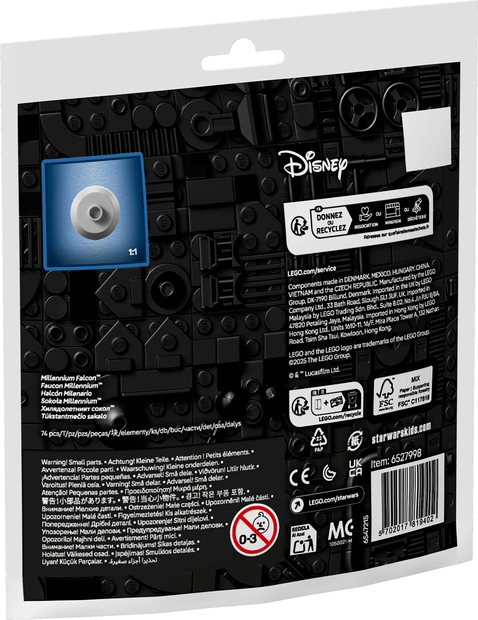Los jóvenes fans de Star Wars™ podrán construir y exponer su propia versión a pequeña escala del legendario Halcón Milenario, también conocido como “el montón de chatarra más rápido de la galaxia”. Este modelo de bolsillo es ideal para recrear emocionantes aventuras o decorar cualquier rincón con estilo galáctico.