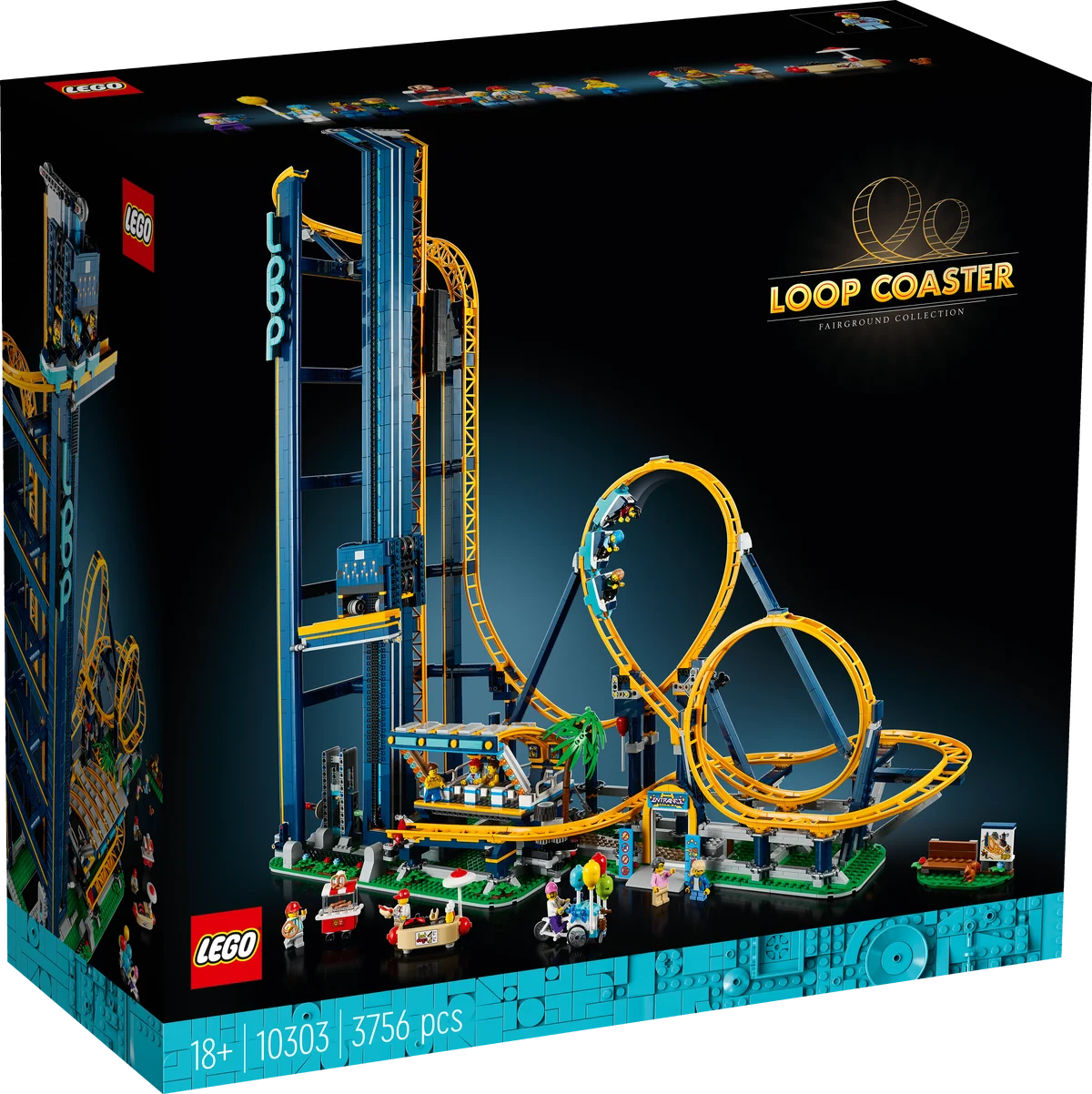 Este modelo viene con 11 minifiguras, entre ellas: operador de la atracción, vendedores de globos, perritos calientes y rosquillas, una abuela, un niño y visitantes, seis de las cuales tienen caras reversibles con diferentes emociones para añadir dinamismo a la escena.