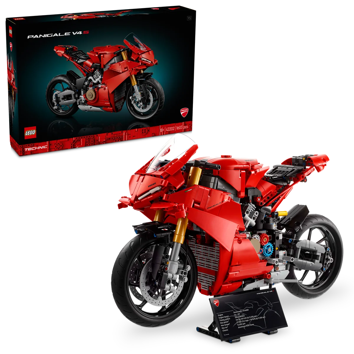 ¡Construye, explora y celebra la pasión por la velocidad y el diseño con esta icónica Ducati Panigale V4 S de LEGO® Technic!