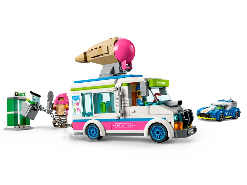 Con el set LEGO® City Persecución Policial del Camión de los Helados (60314), tu peque se sumergirá en una historia llena de humor, acción y persecuciones al mejor estilo de LEGO City: Aventuras en la Ciudad. El camión de los helados esconde una banda de ladrones que lanza “chofs” mientras escapa de una intrépida agente de policía equipada con un coche patrulla eyector de trituradores de neumáticos.