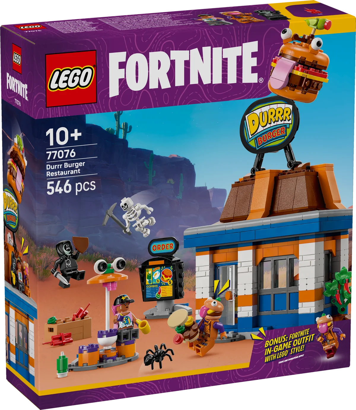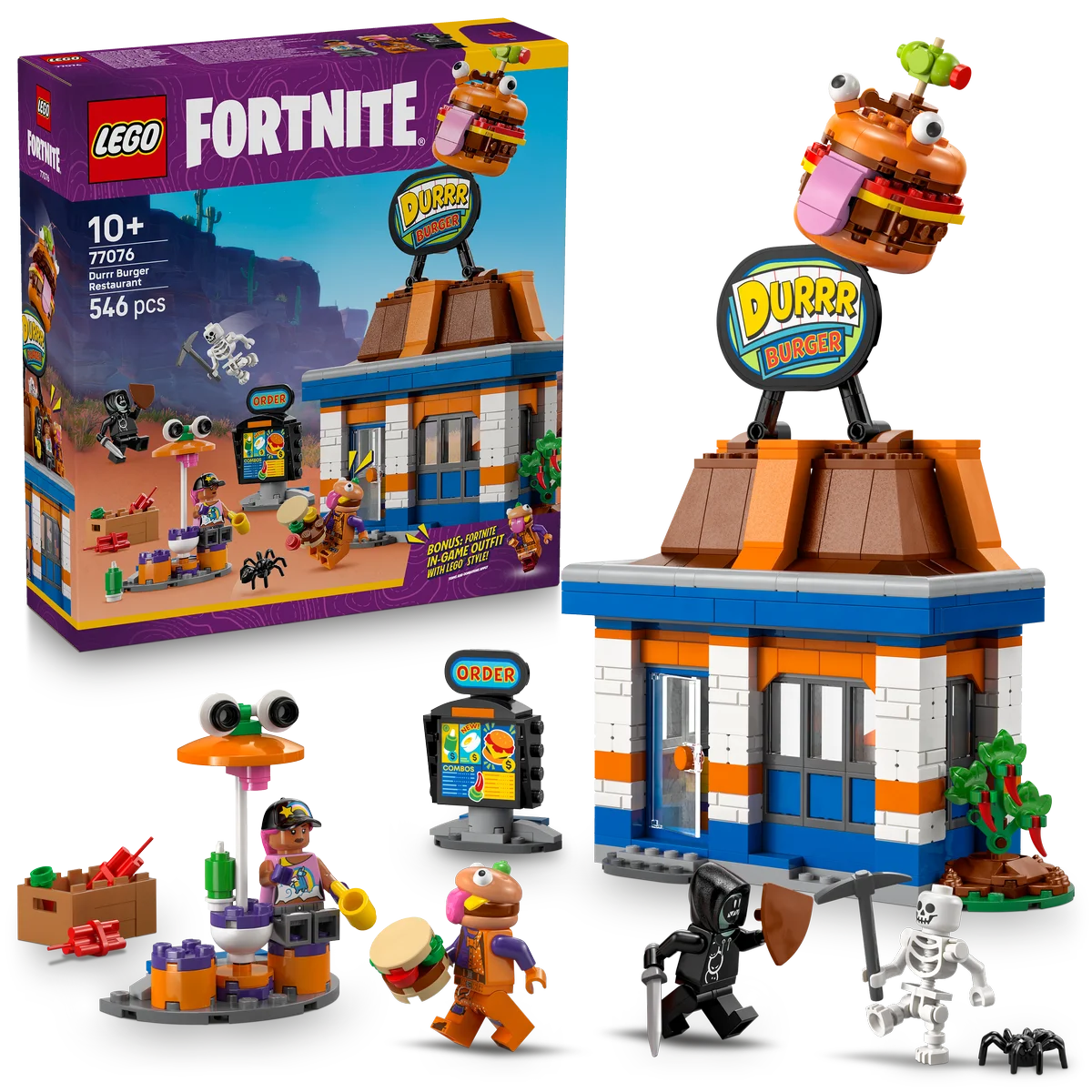 Los fans del videojuego pueden recrear uno de sus escenarios favoritos con el set LEGO® Fortnite® Restaurante Hamburrrguesa (#77076). Diseñado para niños y niñas a partir de 10 años, este modelo modular invita a crear, personalizar y jugar mientras los peques se sumergen en aventuras inspiradas en el universo de Fortnite.