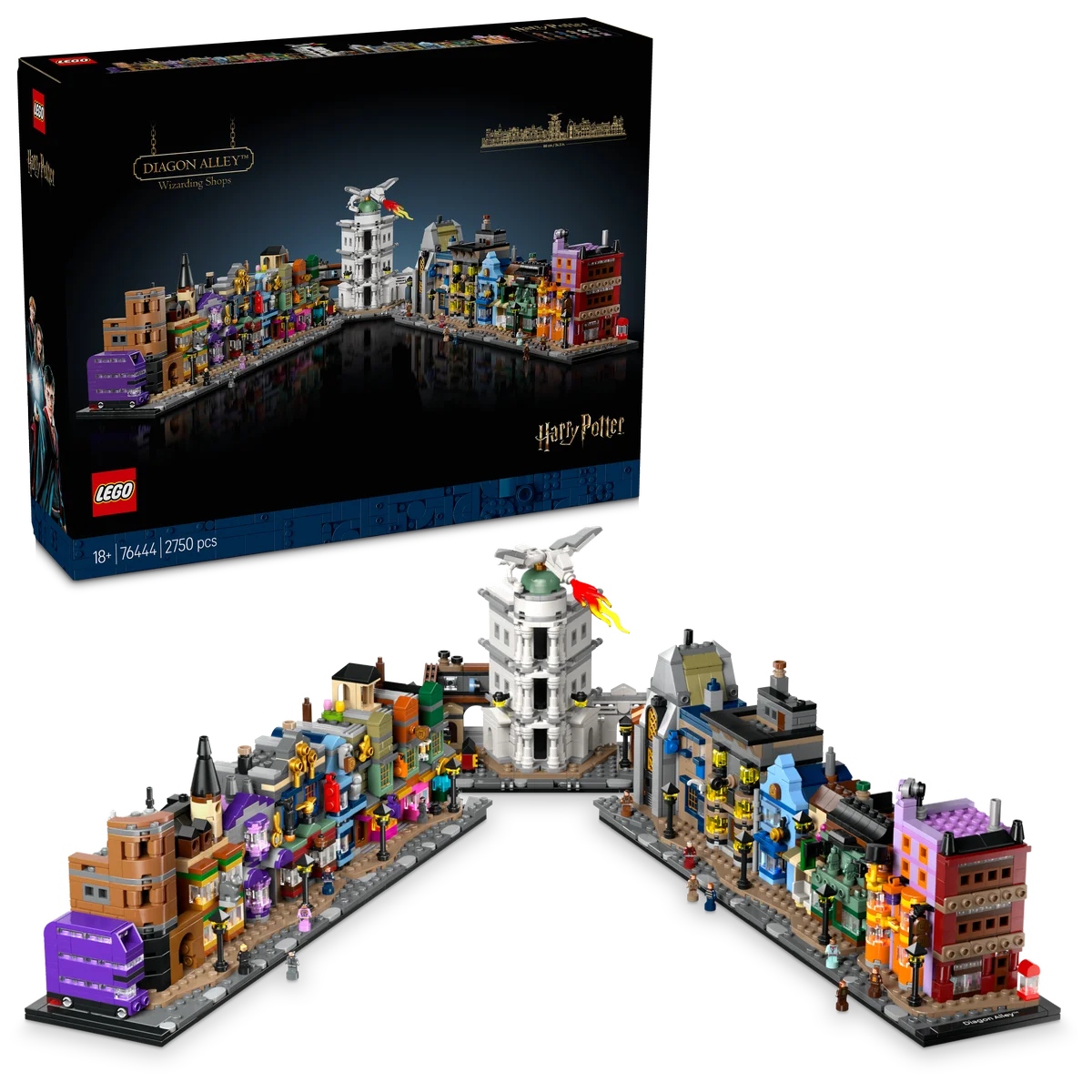Escapa al Mundo Mágico con el encantador set LEGO® Harry Potter™ Callejón Diagon a Microescala (76444), una obra de arte coleccionable diseñada especialmente para adultos fans de la saga.