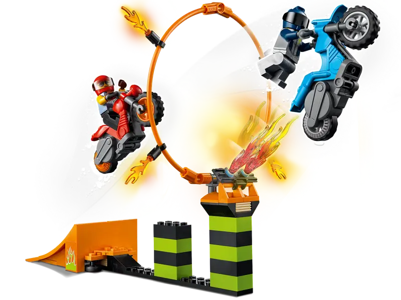 ¡Lanza, salta y supera el anillo de fuego con este dinámico set LEGO City que llevará la acción acrobática al siguiente nivel!