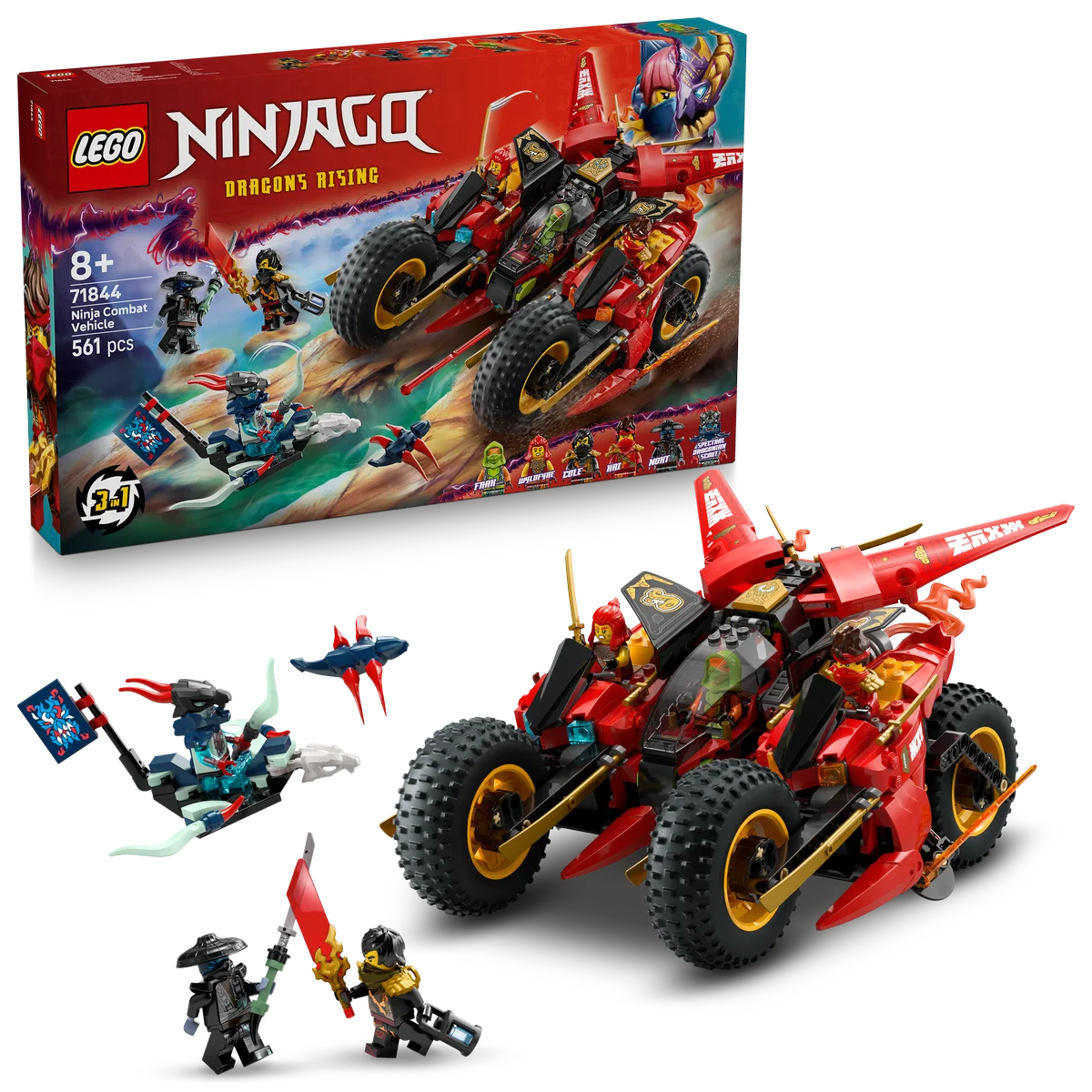 Prepárate para triple dosis de acción con el Vehículo de Combate Ninja 3 en 1 (71844) de LEGO® NINJAGO®. Diseñado para niños y niñas a partir de 8 años, este set de 561 piezas recrea escenas épicas de la temporada 3 de El Renacer de los Dragones y permite desatar todo el poder ninja por tierra y aire.