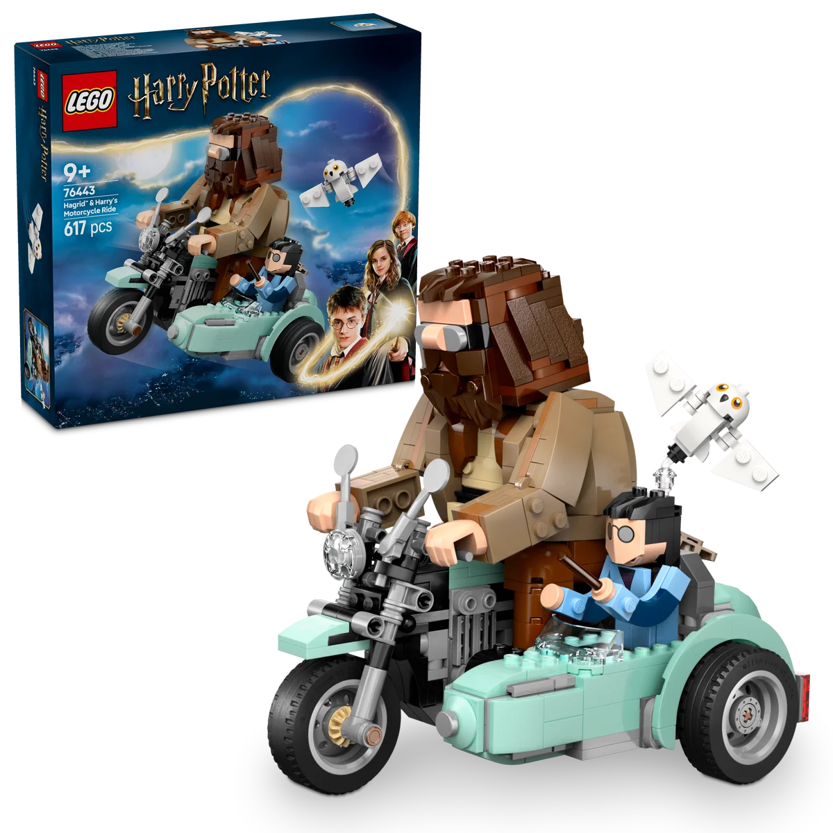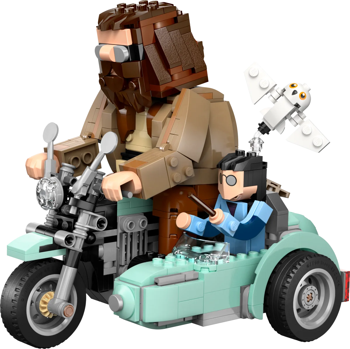 Diseñado para fans de 9 años o más, el set incluye figuras de Harry Potter, Hagrid y Hedwig™ integradas en el modelo. Las ruedas giran, las alas de Hedwig se ajustan, y los brazos y cabezas de los personajes son articulables, ofreciendo así una experiencia de juego dinámica y llena de magia.
