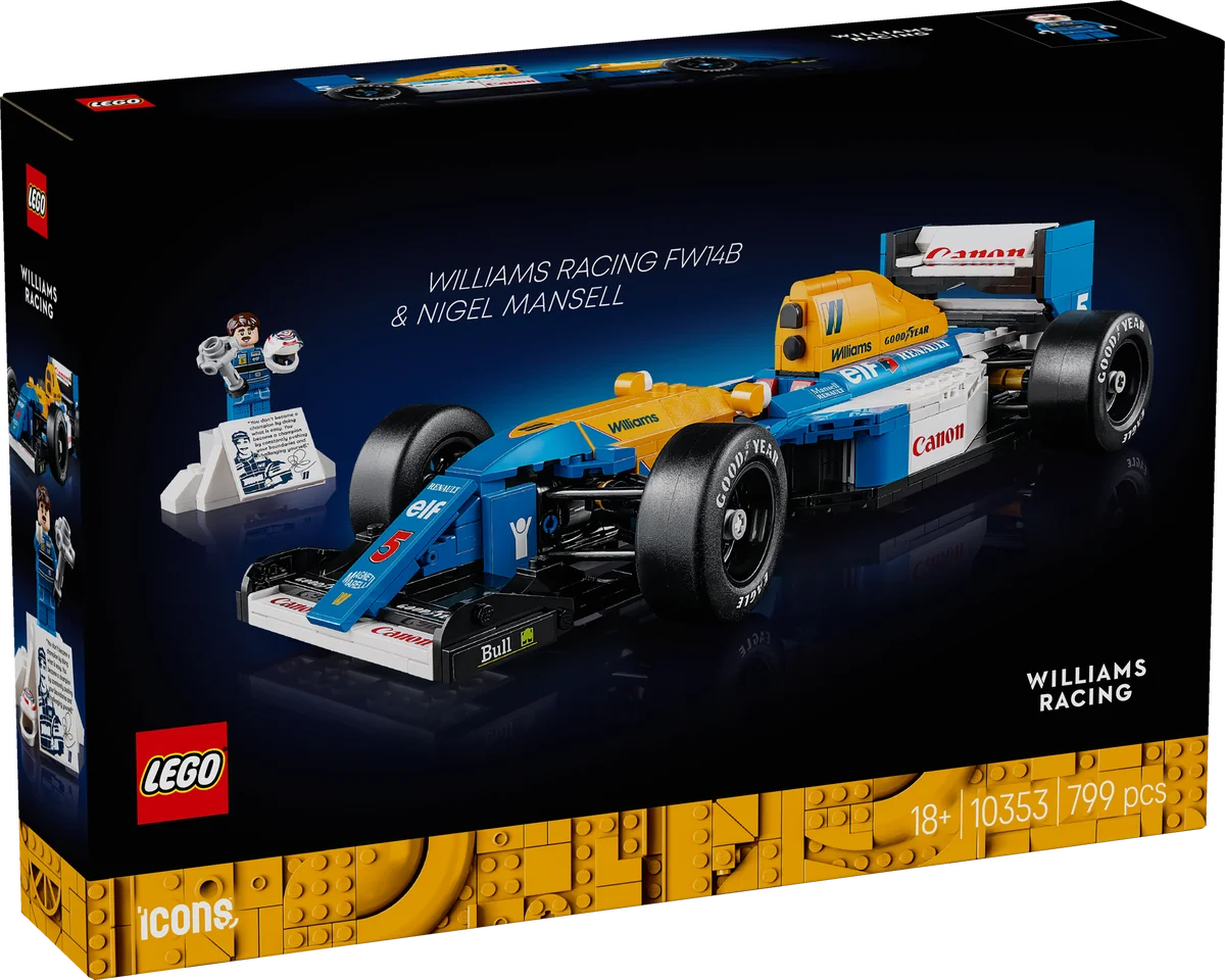 Vuelve a vivir uno de los momentos más icónicos de la historia de la Fórmula 1® con el LEGO® Icons Williams Racing FW14B y Nigel Mansell (10353), un set de construcción coleccionable para adultos que rinde homenaje a la temporada de 1992, cuando Nigel Mansell conquistó el Campeonato Mundial.
